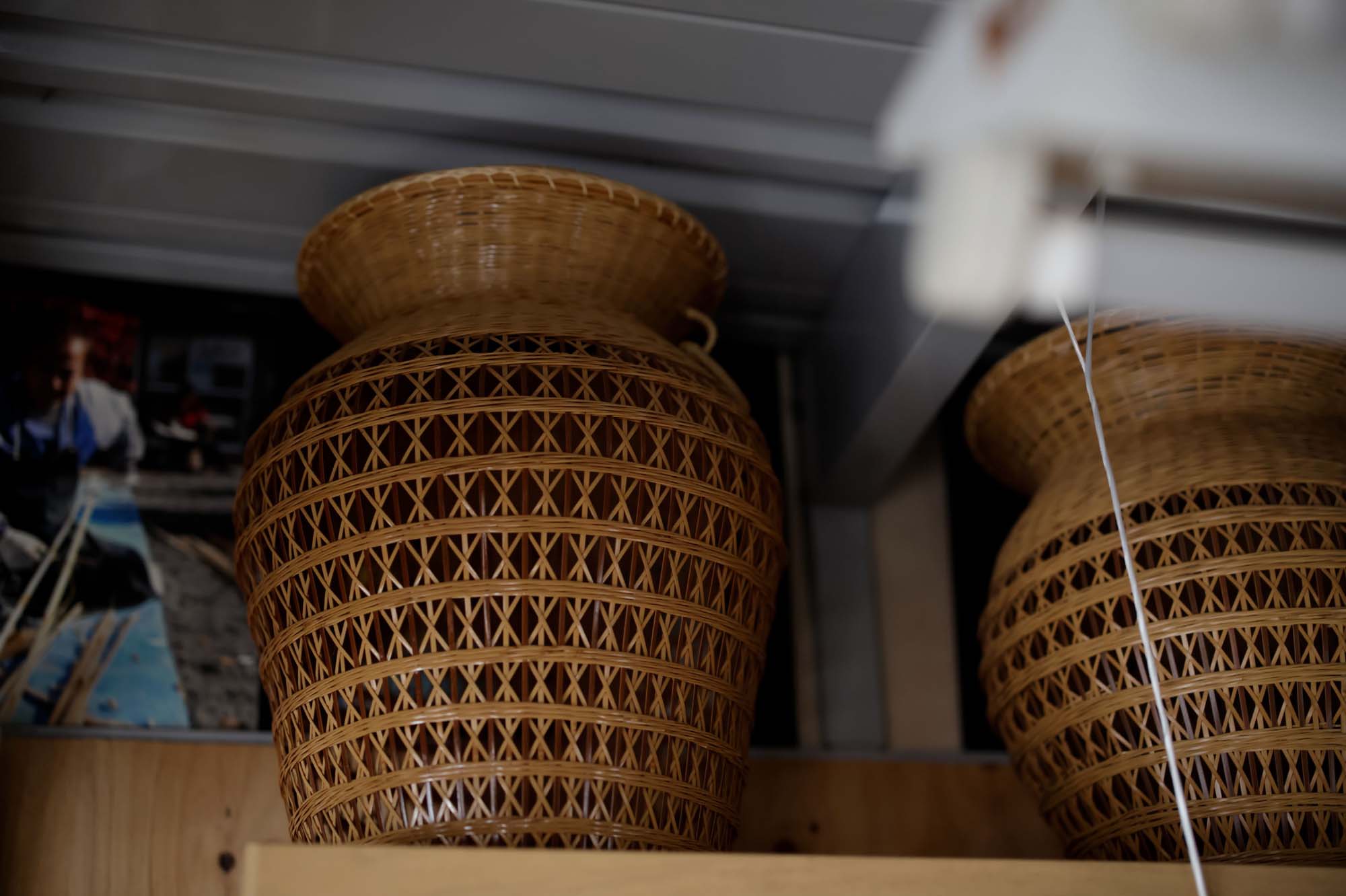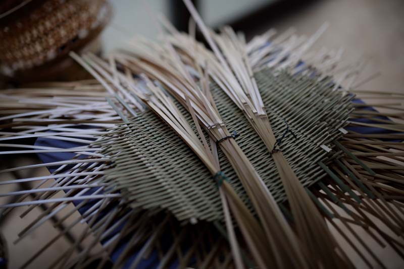 柚木さんのお父様はもともと竹刀をつくる職人だった。中国から機械生産のものが入ってくるようになると、手製のものは高価で売れなくなり、編組の竹細工をつくるようになった。しかし、柚木さんはその跡を継いだわけではない。大阪の会社に就職して、やがてご両親の面倒をみるために、奥様の○○さんと地元に戻った。はじめは竹細工をやるつもりはなかったが、「なんでかな」、竹細工を始めるようになった。