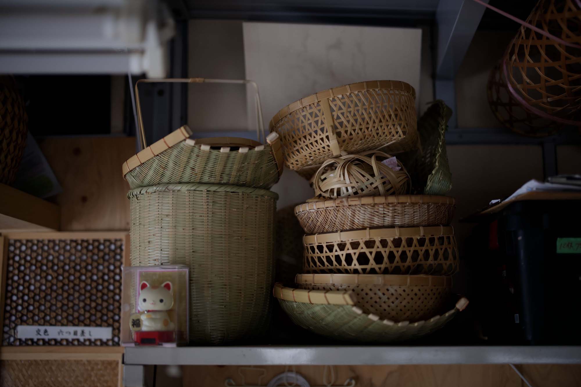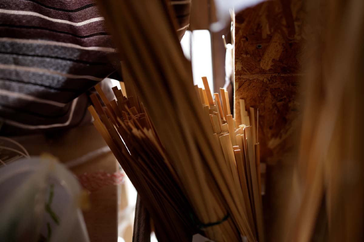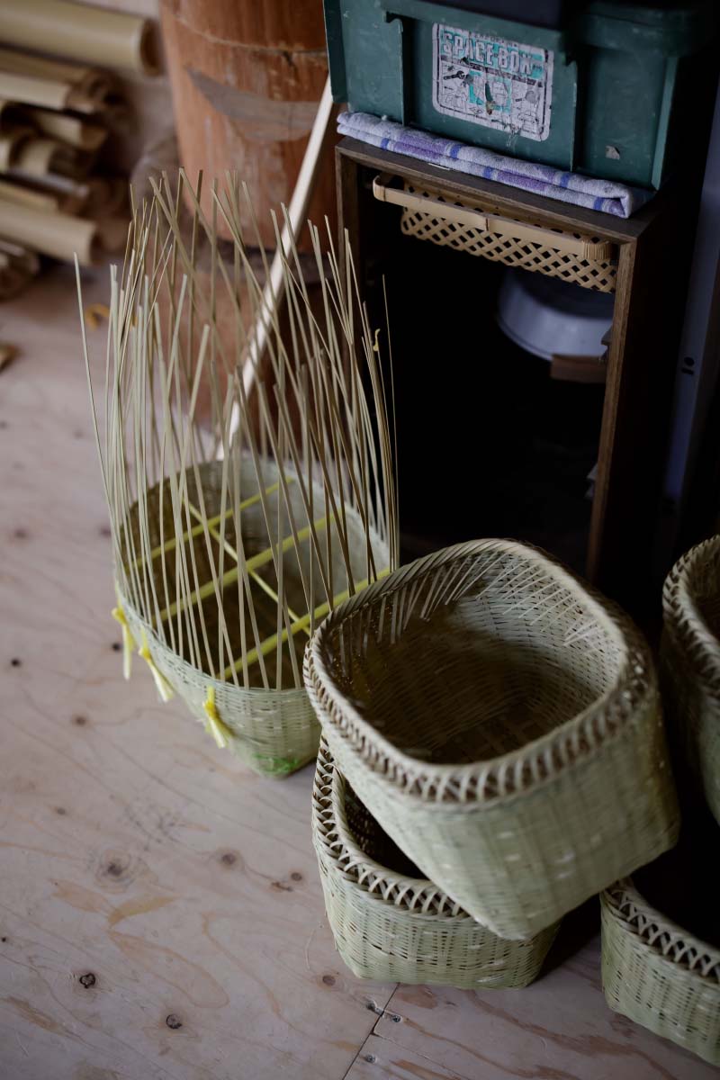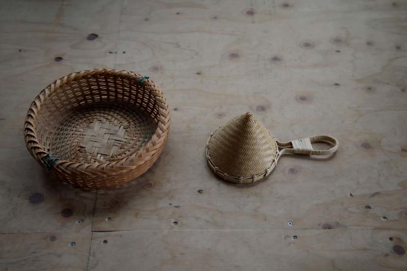 「家内もがんばってくれているからね」。柚木さんとともに編組の技術を習得した○○さんと二人三脚で、高知、兵庫、千葉、岩手にある取引先から注文をもらう分だけをつくる。二人でつくれる分しか注文は受けない。他の人に託すこともできなくはないけれど、自分がつくるものと少しでも違ってしまっては、注文してくれた人に悪いと思うからだ。その代わり、自分の編組の技術を人に伝授することは、少しもいとわない。このまま放っておけば、この地域から竹細工の文化がなくなってしまうのを危惧して、市の施設や自身の工房で、若い人たちに向けて竹細工の指導もしている。「私の代で竹細工がなくなるのは嫌やしね。ずっと継承していってほしい」。今どきインターネット上を探せば、いろんな作家がやり方を教えるものはたくさん見つかるけれど、自分の足で山に入り、竹の様子を見て、竹の音を聞いて、竹の質を見極めることの大切さから知ってほしい。柚木さんの口調には、この地の竹林の財産とともに竹細工の歴史がこれからも続くことへの強い願いがこもっていた。